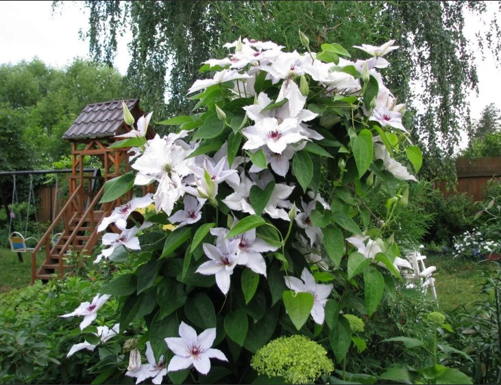 Этот клематис отличается высокой устойчивостью к болезням и неприхотливостью в уходе. Он прекрасно растет как на солнечных участках, так и в полутени, предпочитая плодородные, хорошо дренированные почвы. Сноу Квин идеально подходит для вертикального озеленения: его можно использовать для украшения беседок, пергол, заборов и стен.