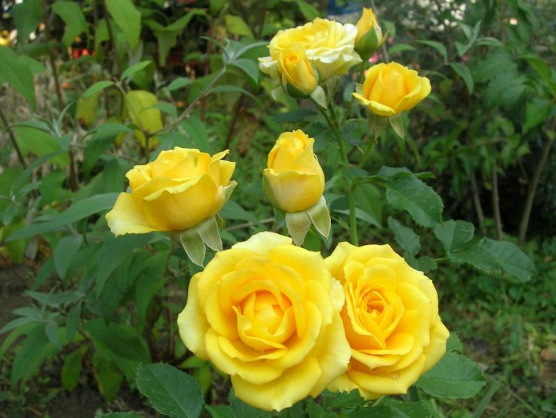 Спрей роза Йеллоу Эвелин (Yellow Eveline) – это великолепное украшение для вашего сада, которое привнесет яркие солнечные оттенки и изысканный аромат. Этот сорт розы отличается обильным цветением и компактным кустом, что делает его идеальным для создания живых изгородей, бордюров или клумб.